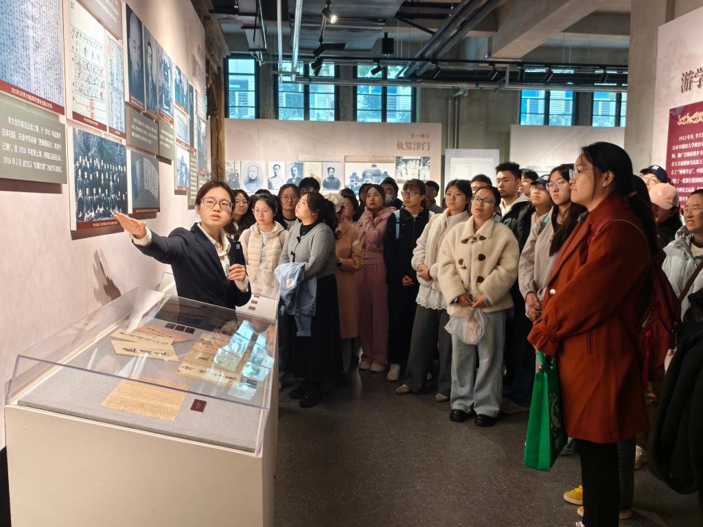 活動伊始,師生在講解員的引導下參觀了具有深厚歷史底蘊的北洋法政學堂。通過細致生動的講解,大家深入了解了北洋法政學堂這一中國近代法學與政治教育的重要發源地,不僅是學術的殿堂,更是一片革命的沃土。革命先驅李大釗先生曾在此求學,并深受其史地教員、革命家白毓昆先生的深刻影響。白毓昆先生作為中國第一個地理學術刊物《地學雜志》創刊人,其“地理學救國”的實踐精神與革命情懷,深刻啟發了青年李大釗,推動李大釗將地理知識與國家命運、民族前途緊密相連,逐步確立起“鐵肩擔道義”的崇高志向。李大釗等先輩的革命足跡與精神血脈,為這座百年學府注入了深厚的紅色基因,也成為激勵后人不懈奮斗的寶貴財富。