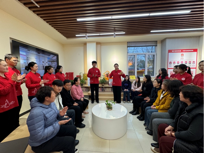 創富工坊里,學生理論宣講團成員惠觜薇同學將印有黨的二十屆四中全會金句的書簽分發給村民,并逐句講解:“‘堅持人民至上’就是讓發展成果惠及百姓,‘扎實推進鄉村振興’就是要讓農村更美、農民更富。”她拿起書簽上的“農業農村現代化是國家現代化的基礎”,結合工坊的特色產品說:“這就是咱們鄉村振興的‘金鑰匙’,政策會越來越支持咱們創業增收。”村民們翻看著精致的書簽,連連稱贊:“這形式好,把大道理講到了我們心坎上!”“竹板響,聲震天,黨的二十屆四中全會精神傳;金秋十月宏圖展,‘十五五’規劃啟新元……”馬浚皓、儲珍妮同學用自編自導的天津快板生動演繹了黨的二十屆四中全會精神,引來了陣陣掌聲和歡笑。宣講團成員劉淇同學在表演后與鄉親們交流:“咱們種地、搞養殖,要依靠科技、注重質量、創建品牌,讓農產品變成搶手貨,賣出好價錢。”把農業農村現代化的政策,變成了鄉親們聽得懂、用得上的家常話。