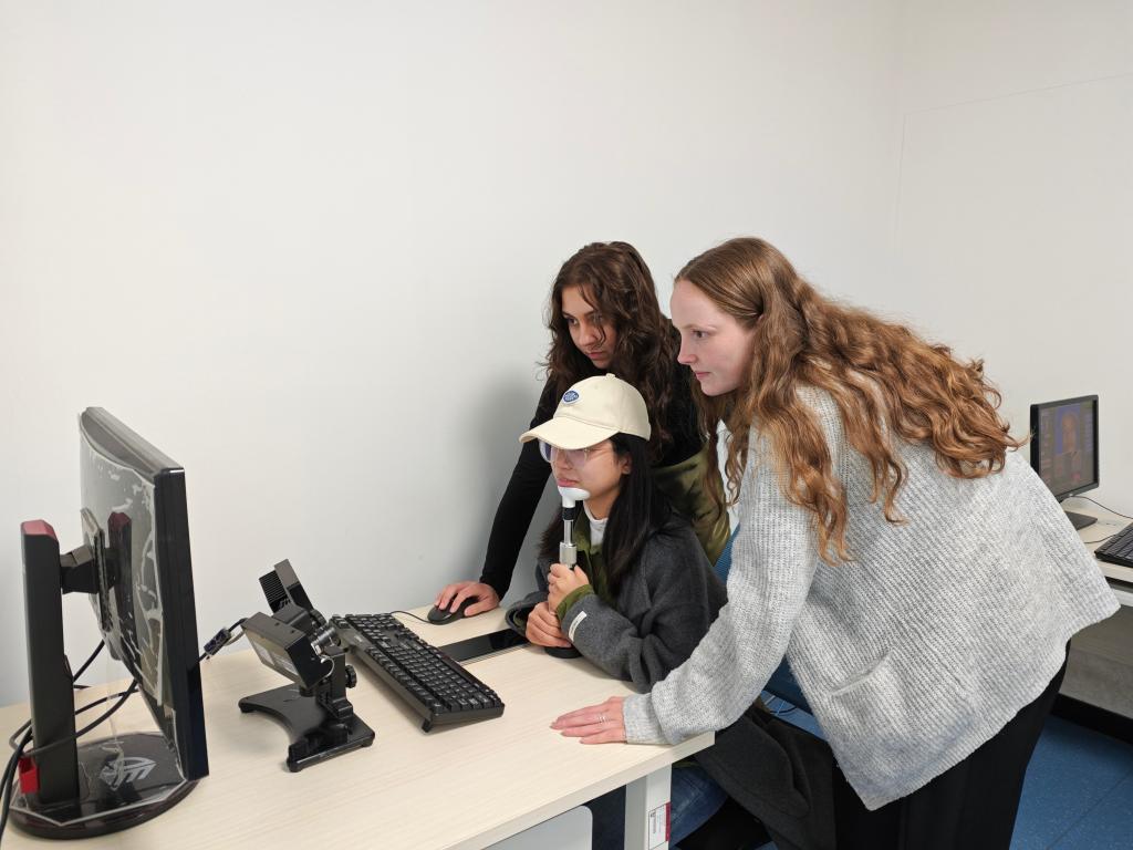兩位國際實(shí)習(xí)生在我校心理學(xué)部眼動(dòng)實(shí)驗(yàn)室、腦電實(shí)驗(yàn)室、腦磁實(shí)驗(yàn)室等開展了實(shí)習(xí),雙方分享在實(shí)驗(yàn)儀器操作使用、數(shù)據(jù)采集的經(jīng)驗(yàn)及實(shí)驗(yàn)室管理的先進(jìn)理念;協(xié)助我校眼動(dòng)研究團(tuán)隊(duì)完成中-英跨語言閱讀研究的實(shí)驗(yàn)材料編制,參與部分?jǐn)?shù)據(jù)采集。實(shí)習(xí)期間,國際實(shí)習(xí)生充分發(fā)揮自身的專業(yè)技術(shù)優(yōu)勢,與心理學(xué)部師生開展了相關(guān)跨語言及其多模態(tài)研究系列主題的匯報(bào),并共同研討了具體實(shí)驗(yàn)方案與未來合作計(jì)劃。合作雙方借助我校一流心理實(shí)驗(yàn)平臺(tái)及先進(jìn)的眼動(dòng)儀、ERP、fMRI、MEG等多模態(tài)腦成像系統(tǒng)設(shè)備,開展了眼動(dòng)與腦電同步記錄技術(shù)與數(shù)據(jù)分析的技能培訓(xùn)與交流。