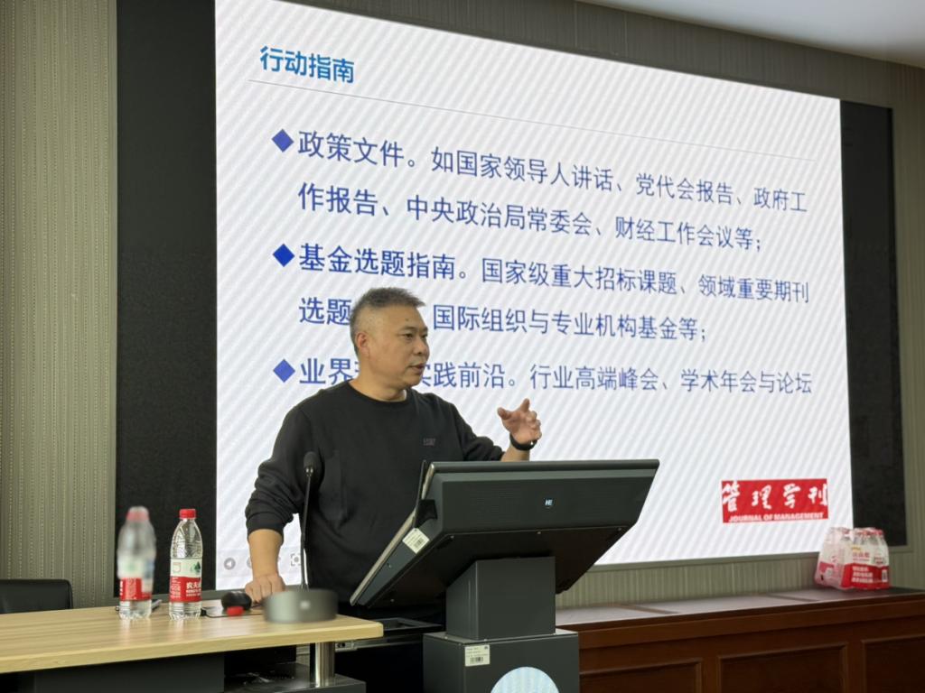張躍勝以“破解‘精致的平庸’,提升經管論文價值”為主題,深度解析了從選題、撰寫、發表的全流程操作。他講道,首先,選題應以“四面向”破局,即面向國家戰略、理論前沿、實踐需求、民生關切,兼顧熱點與前沿,可從政策文件、基金選題、業界動態等角度切入,使選題既貼合實際又具有前瞻性;其次,撰寫需杜絕空泛,要憑借“價值導向 + 精進研究”突破困境,理論分析需直達本質;要聚焦構建中國特色知識體系、提出原創思想與方法論進行創新;要堅持“大議題小切口”原則,運用扎實的微觀數據夯實基礎,避免空洞的論述;最后,發表要精準匹配期刊,避開盲目投稿。