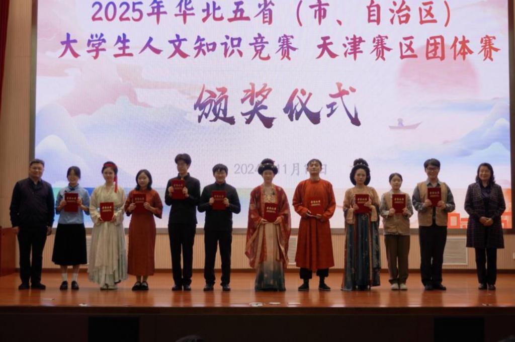 本站訊(通訊員 李倩 劉暢 周寶東)11月15日,以“觀乎人文,化成天下”為主題的華北五省(市、自治區)大學生人文知識競賽天津賽區團隊賽決賽在天津師范大學舉行。賽事由天津市教育委員會主辦,天津師范大學承辦。來自南開大學、天津大學、天津師范大學、天津科技大學、天津職業技術師范大學、中國民航大學等六所高校的代表隊齊聚一堂,展開了一場精彩紛呈的人文素養較量。我校代表隊以扎實的學識和精湛的表演獲得冠軍。天津市教委高教處處長徐震現場觀賽,學校教務處、文學院主要負責人及400余名學生參加活動。?