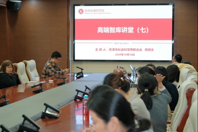第七期高端智庫講堂特邀天津市社會科學界聯合會智庫工作部、中央直報點負責人周博文同志主講。周博文以“情報信息與咨政報告撰寫”為題,圍繞智庫如何在信息調研工作中充分發揮作用展開闡釋,系統介紹了新型智庫在為黨和政府建言獻策、推動理論創新、引導社會輿論、服務社會需要及開展公共外交等方面的重要功能。他強調,一篇高質量的咨政報告應具備知識性、傳遞性、時效性三大核心要素,為參會人員搭建起咨政報告寫作的基礎認知框架。在咨政報告寫作實踐指導環節,周博文圍繞咨政報告的選題方向、邏輯架構、數據支撐及語言表達等關鍵要素,結合典型案例,剖析了撰寫過程中需規避的常見問題,強調報告需緊扣政策需求、凸顯問題導向與對策可行性。針對選題策劃,他提出要從“政治高度、理論厚度、時間深度、人文溫度”四個維度出發,精準把握決策咨詢需求,強化問題意識與問題導向,確保對問題對策的把握兼具準確性、敏銳性與前瞻性,為參會人員提供了清晰的寫作思路與實踐路徑。