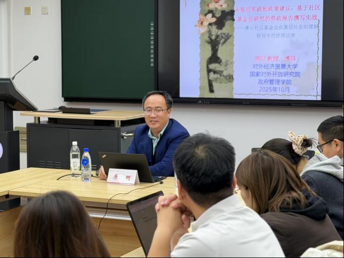 第九期高端智庫講堂由智庫發展研究院與天津市高端智庫、CTTI高校百強智庫“國家治理研究院”聯合舉辦,特邀對外經濟貿易大學國家(北京)對外開放研究院、政府管理學院原珂教授主講。原珂以“從基層實踐到政策建議:基于社區基金會研究的資政報告撰寫實戰”為題,指出寫好文章的總原則是按照好文章的要求努力,詳細而充分地收集材料,形成問題意識,進而形成一個好的選題。他以“社區基金會”研究為典型案例,圍繞如何從生動的基層治理實踐中,精準提煉出具有普遍性的政策議題,以及如何將調研發現和數據證據,轉化為具有前瞻性、可操作性的政策語言與具體建議,進行了實戰解析。在探討提升咨政報告的寫作水平時,原珂為大家講述了咨政工作的意義和寫好咨政報告的技巧。他強調,咨政報告與論文的撰寫不同,要把握好咨政的選題方向、結構規范與表達邏輯,為與會人員提供了獨特咨政研究視角。互動交流環節中,參會人員圍繞咨政報告選題技巧、不同平臺報送側重點、咨政報告撰寫方法等問題積極提問,主講專家逐一耐心解答,現場氛圍熱烈。參會教師紛紛表示,講座內容務實、案例鮮活,既厘清了咨政報告撰寫的關鍵邏輯,也明確了后續研究的努力方向。