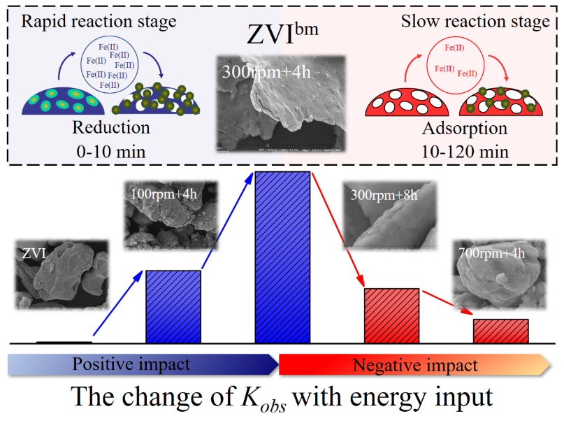 球磨法在克服鈍化問(wèn)題提高零價(jià)鐵(ZVI)去污效率方面具有顯著的應(yīng)用前景。目前,球磨零價(jià)鐵(ZVIbm)在污染消除方面的重點(diǎn)研究較少。ZVIbm的去除性能經(jīng)常被用作參考,以突出其他球磨處理的強(qiáng)化效果。然而,球磨過(guò)程中工藝參數(shù)和過(guò)程控制劑(PCA)對(duì)ZVIbm反應(yīng)性的間接影響卻被嚴(yán)重忽視。了解能量輸入的影響對(duì)于ZVIbm的工業(yè)化大規(guī)模生產(chǎn)及其在環(huán)境污染修復(fù)中的應(yīng)用至關(guān)重要。