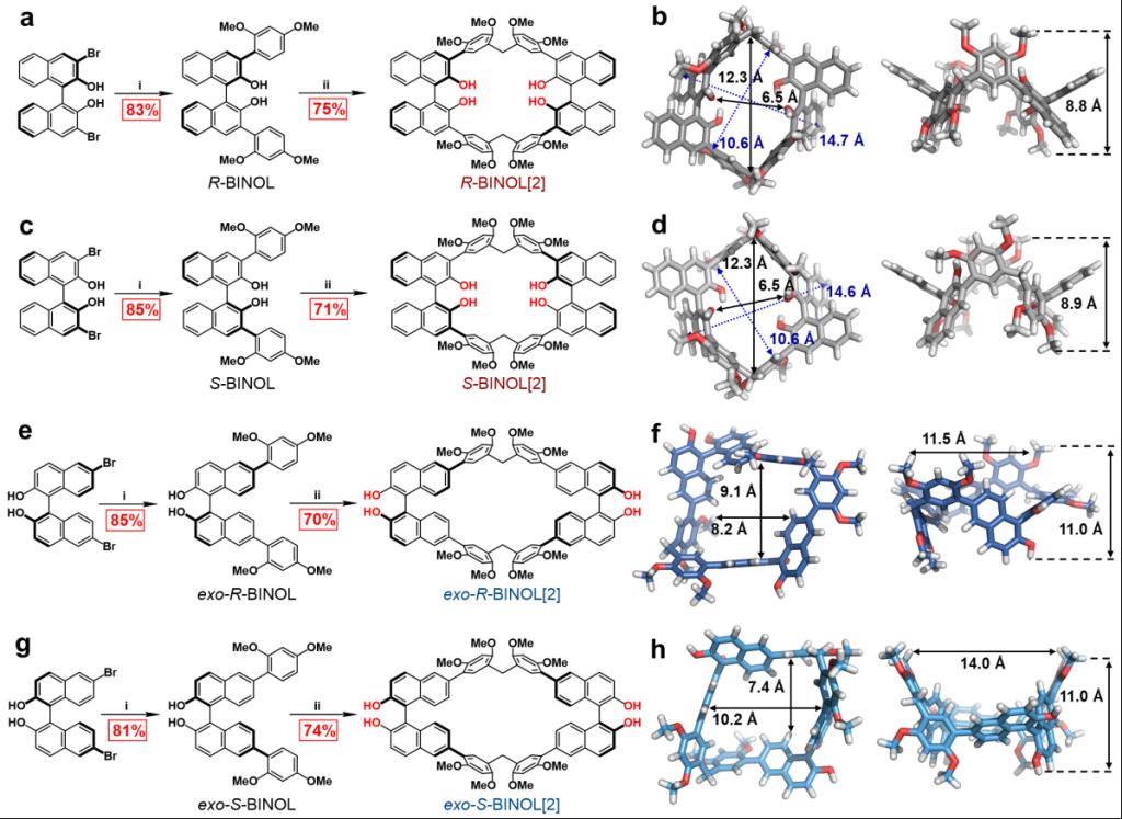 圖 手性聯(lián)萘大環(huán)的合成路線及單晶結(jié)構(gòu)