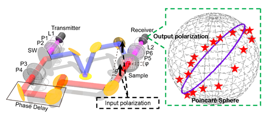 在這項工作中,研究人員借助于相干完美吸收體的概念,將其推廣至偏振轉換方面,結合硅光子晶體平板結構中對稱性保護BIC的偏振拓撲特征和角度依賴特性,在太赫茲波段,通過精細控制兩個相同輸入偏振太赫茲波到達樣品的相對位相延遲這一新的調控自由度,在太赫茲波段實現了對輸出偏振態的高效、實時調控,且輸出偏振態可通過改變入射角度和樣品面內旋轉角度覆蓋整個龐加萊球。該研究工作中提出的相干控制下的偏振態調控方法不僅極大地擴展了對稱性保護BIC在單路偏振光入射下對輸出偏振態的調控范圍,還可同時實現對輸出偏振態的實時調控,為不同波段的主動式光偏振調控器件研究提供了新的思路。