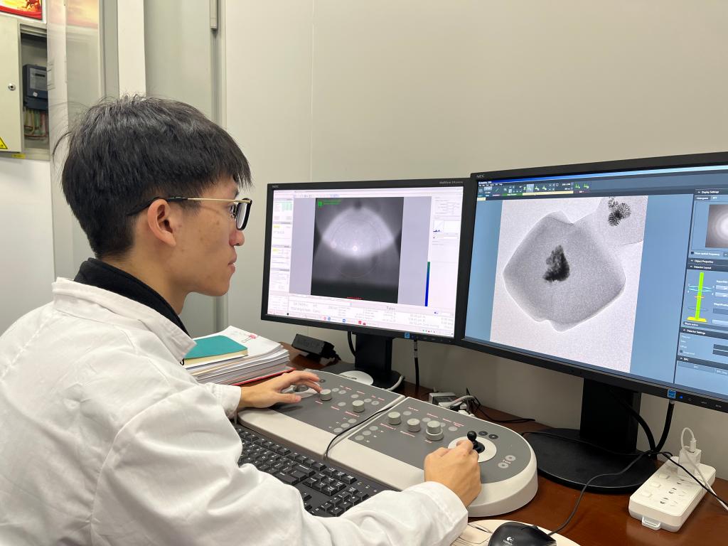 “科研如同晶體提純,唯有過濾浮躁、潛心鉆研,才能萃取出問題的本質。”談及讀研的心得,溫浩明這樣總結道。2022年,溫浩明繼續攻讀本校的化學專業理學碩士學位,基于對學科的熱愛,他選擇深耕無機化學的微觀研究領域。研一暑期,他在實驗室連續三個月嘗試合成新型納米材料,然而產物形貌始終未達預期,在凝視透射電子顯微鏡下的異常產物時,他一度對自己的研究方向產生懷疑。直至在導師賀鴻明的建議下,他系統研讀近五年合成領域文獻,通過追根溯源地分析,才發現反應過程中的滴加速度與溫度控制是改善產物形貌的關鍵因素,一張張透射電鏡圖記錄著他每一個深夜處理實驗數據的時光。“讀研這幾年,我最大的收獲并非合成出某種新材料,而是學會思考問題本質并解決問題。”他說道。
