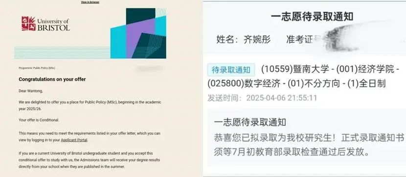 齊婉彤的“雙豐收”來之不易,站在人生的十字路口上她也曾面對迷茫。申請留學沒有收到理想的offer,備考時間不夠充足打擊了她的信心,再加上外部的就業壓力,使她在準備升學的過程中倍感焦慮。當齊婉彤在留學深造與國內讀研間舉棋不定時,吳老師化身“人生規劃師”,創新性地提出“雙軌準備”策略,她在申請QS前50院校的同時,又受到吳老師潛移默化的影響,準備考取數字經濟研究方向的碩士學位。