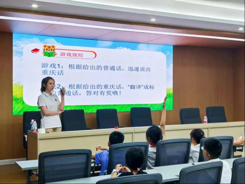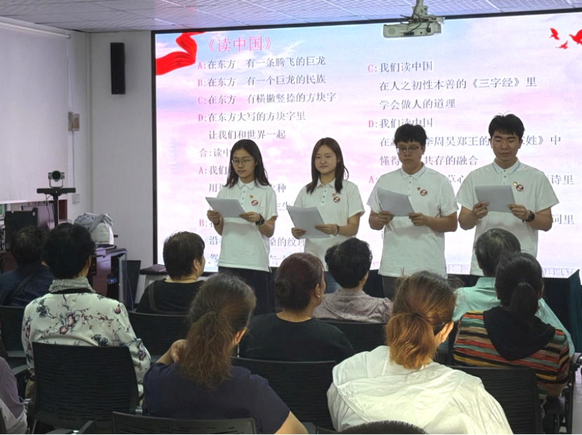 使命踐行:構筑民族同心橋為積極響應共青團中央關于“三下鄉”社會實踐的號召,發揮青年力量助力鄉村振興,研支團全員參與2025年“三下鄉”暑期社會實踐活動,組建的“津師普語西行,數字推普興鄉”志愿服務團隊入選全國重點團隊。他們前往新疆、甘肅、重慶三地的4個社區以及甘肅省博物館,開展形式多樣的普通話推廣活動。在甘肅省博物館里,成員們在文物鑒賞中觸摸文明根脈,在紅色研學中汲取精神力量,以普通話為載體,讓歷史“訴說”與革命的“故事”;在社區里,成員們將方言與普通話相對照,用小故事引出“學好說好普通話”的大道理,增添繞口令、“我是小小講解員”等趣味推普課堂,同時輔以數字語博體驗等多元活動,形成一堂堂“推普”思政課,在推廣普及國家通用語言文字的過程中幫助孩子們鑄牢中華民族共同體意識。
