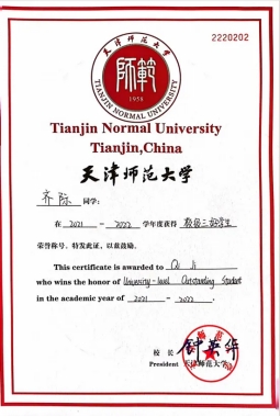 齊際,天津師范大學電子與通信工程學院通信工程專業2025屆畢業生,在校期間曾任校自強社負責人、院團委組織部骨干、班級團支書等職務,多次獲天津市優秀共青團員、校級三好學生、善行100優秀志愿者等榮譽稱號。